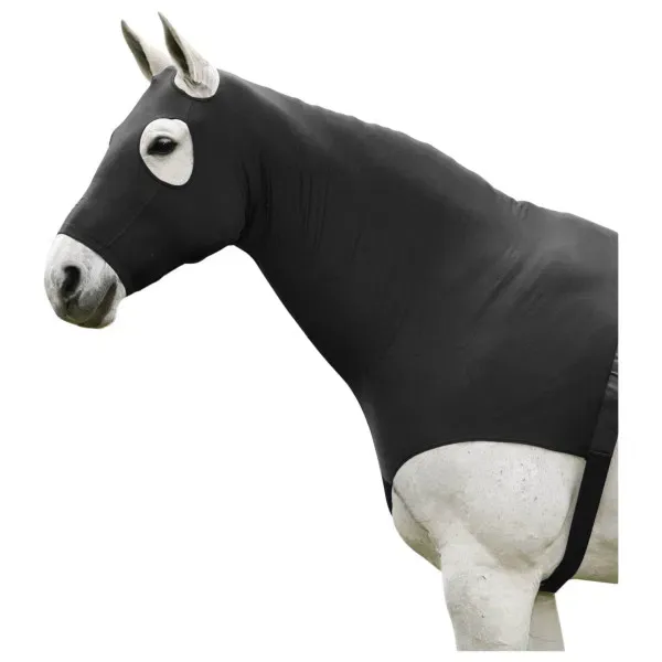 Dieser elastische Halsteil (80% Nilon, 20% Elastan) bietet einen optimalen Schutz vor Schmutz und Scheuerstellen. Der Halsteil kann auch als Schutz nach dem Einflechten angelegt werden. Das Anlegen des Halsteils ist sehr einfach, da dieser über einen Reissverschluss verfügt.