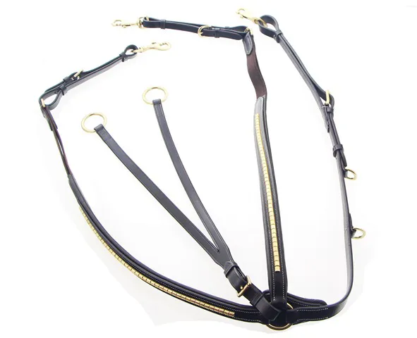 Beschreibung:- Vorderzeug mit wegschnallbarer Martingalgabel und elastifiziertem Halsriemen